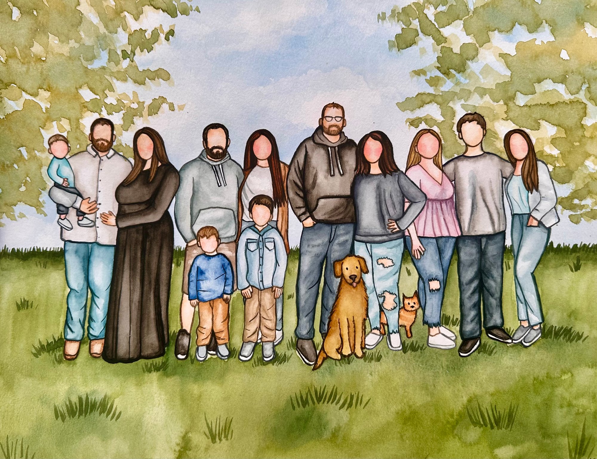 What do I mean by fully custom? You can send me a photo reference of the family member(s) or friends you’d like me to capture through watercolor either through email at [email protected], my business Facebook "Art By Peyton Ahrens," or through sending me a DM through Instagram at @artbypeytonahrens