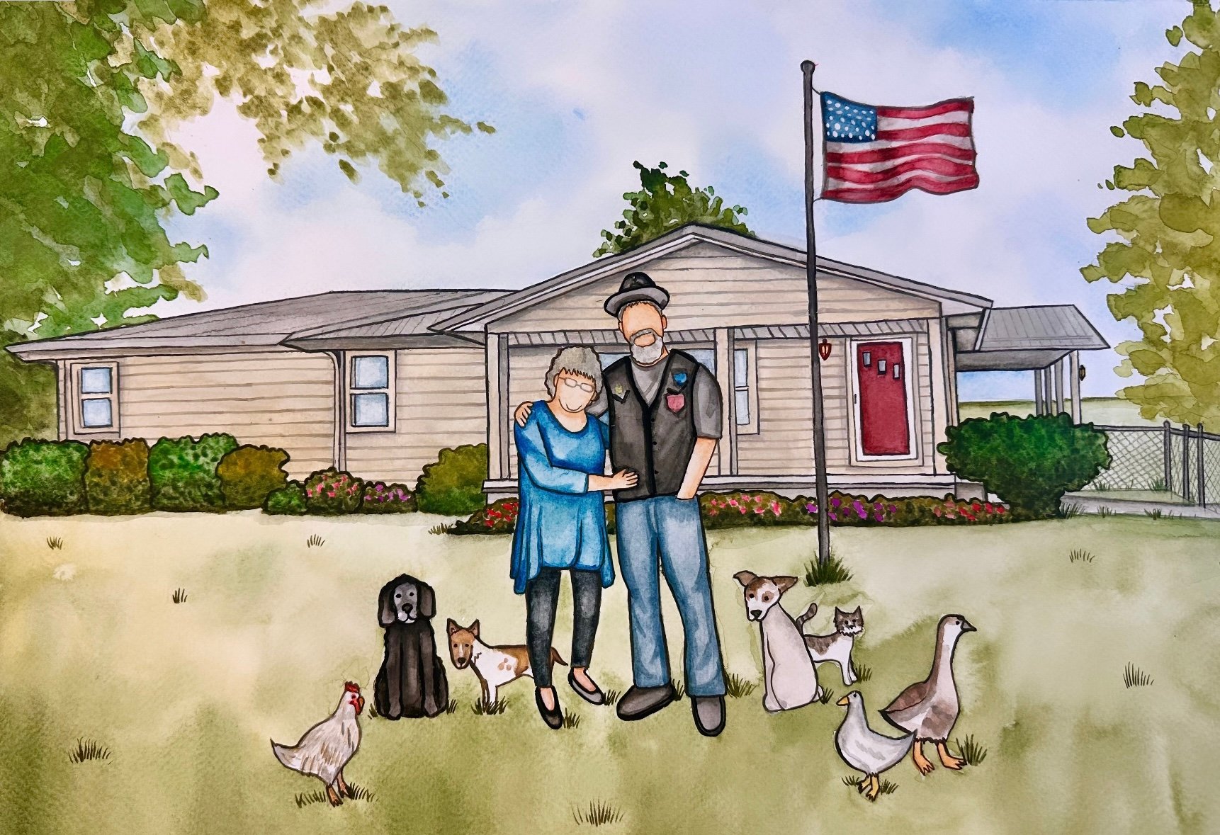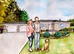 Watercolor Family Portrait with House
